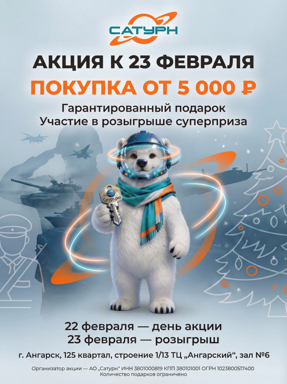 В преддверии Дня защитника Отечества торгово-логистическая база «Сатурн» в Ангарске проводит специальную праздничную акцию для своих покупателей.